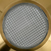 Salvaged from a 1960s theatre in former Czechoslovakia, this vintage brushed brass round flush mount light combines mid-century style with authentic industrial craftsmanship. The vented aluminium housing and original prismatic glass lens cast a soft, textured light pattern when illuminated.