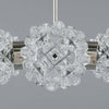 A vintage glass chandelier from 1970s restored with 6 crystal cut spikey globes on a chromed ceiling mounted baluster