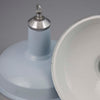 These striking pale blue enamel pendant lights were salvaged from a 1950s electrical substation in the Northwest of England — a time when British industry prided itself on craftsmanship and enduring design. Measuring 365mm in diameter, each shade is formed from vitreous enamelled steel and finished in a soft powder-blue tone that contrasts beautifully with the crisp white interior, enhancing light reflection. The polished aluminium gallery features ribbed detailing and a cast Made in England mark, proudly showcasing their heritage. Once used to illuminate control panels and factory floors, they now bring vintage character to contemporary interiors — perfect above kitchen islands, dining tables or retail counters. Gentle patina across the enamel surface tells the story of their industrial past.