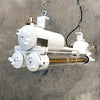 A white vintage industrial ceiling striplight refurbished and modified with Edison LED tubes. These flameproof industrial fixtures were made c1970 by Daeyang a Korean manufacturer of industrial fixtures.